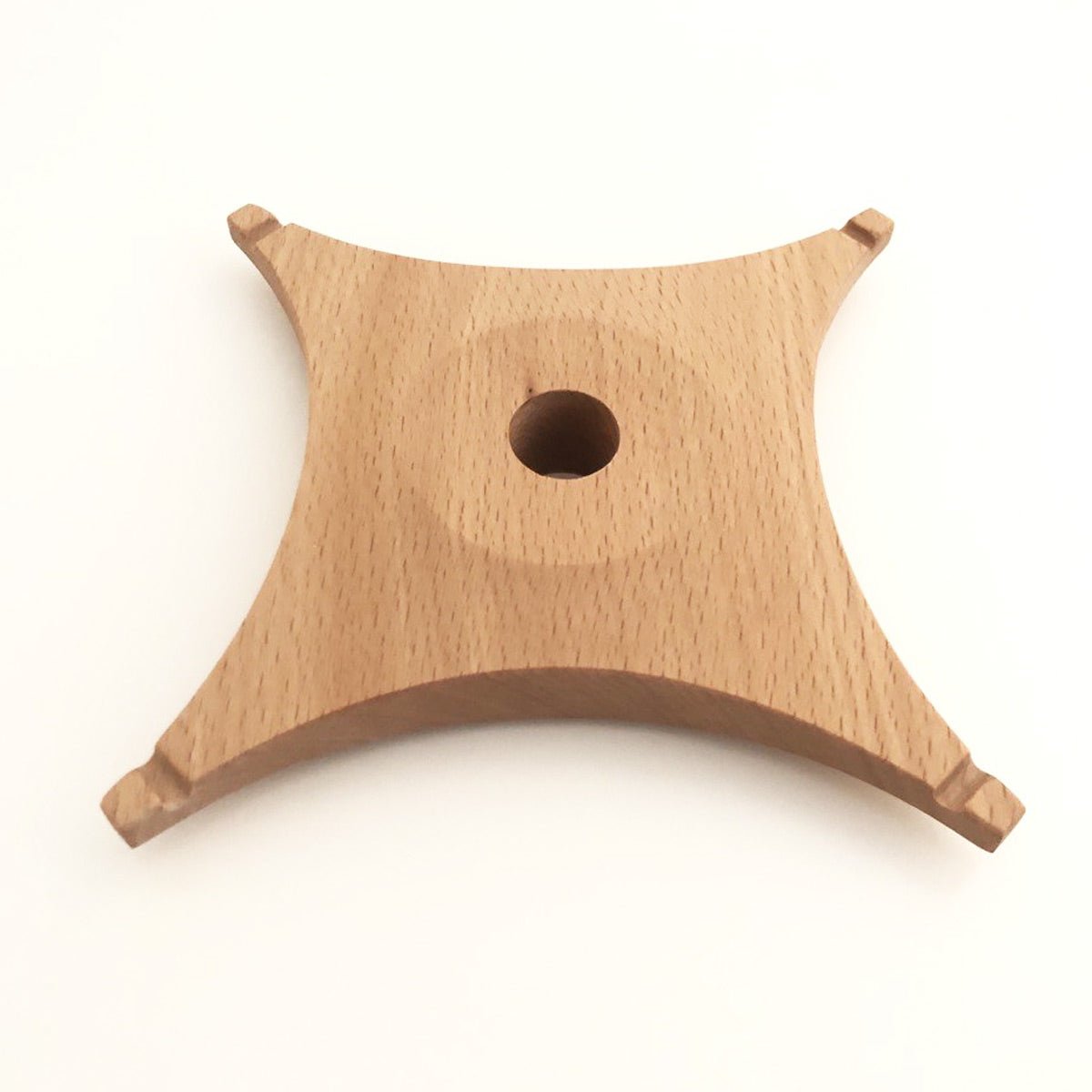 Notre nouveau support premium pour carillon est réalisé par un tourneur sur bois artisan et fabriqué en hêtre massif. Votre carillon est suspendu directement au-dessus de la Fleur de Vie, gravée au fer dans le socle.